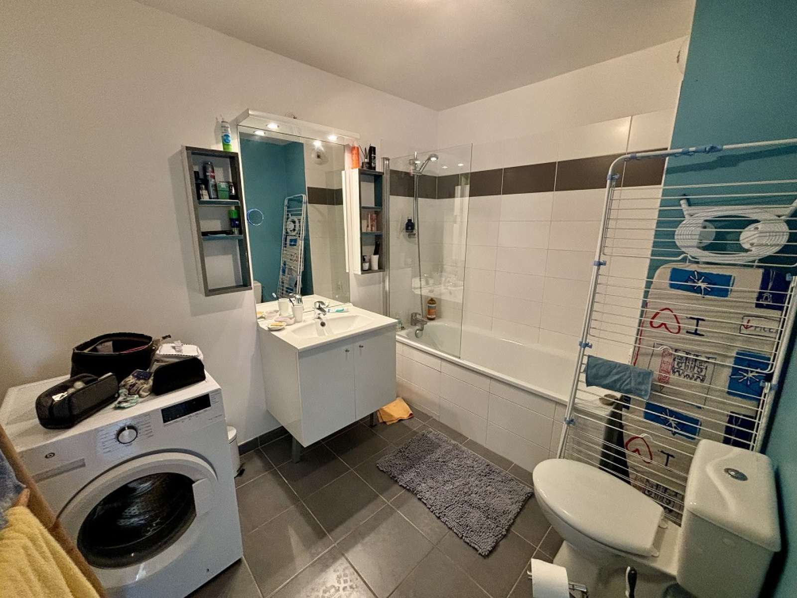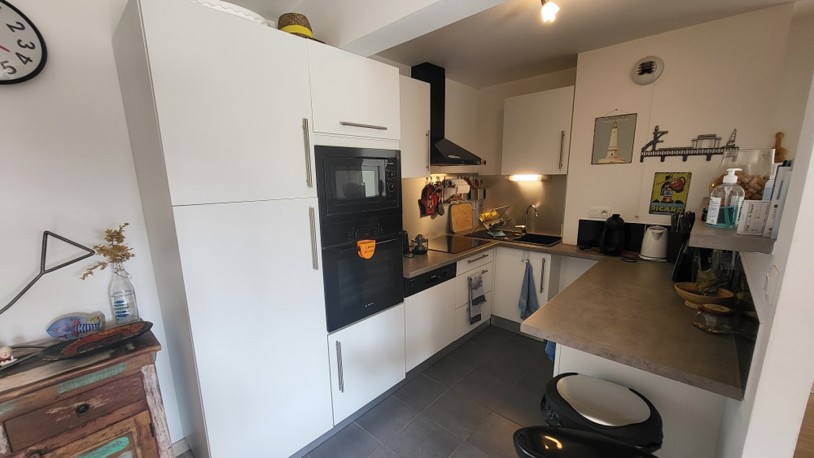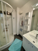 Equipements : TV, réfrigérateur avec freezer, four, micro-onde, plaque de cuisson, hotte aspirante, lave linge, lave vaisselle, wifi