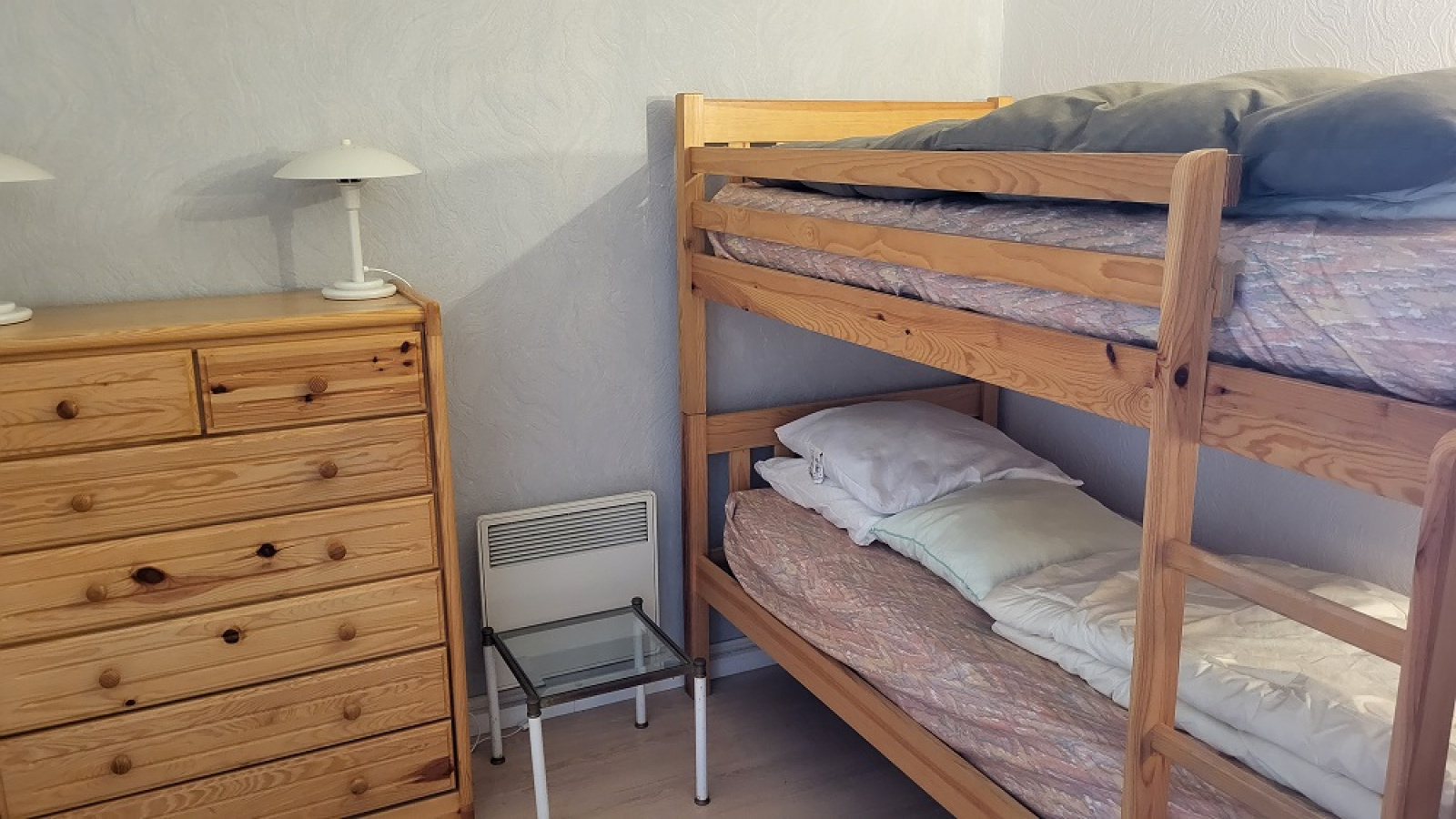 Couchages : 1 lit 2 personnes (160/200), 1 lit superposé soit 4 couchages