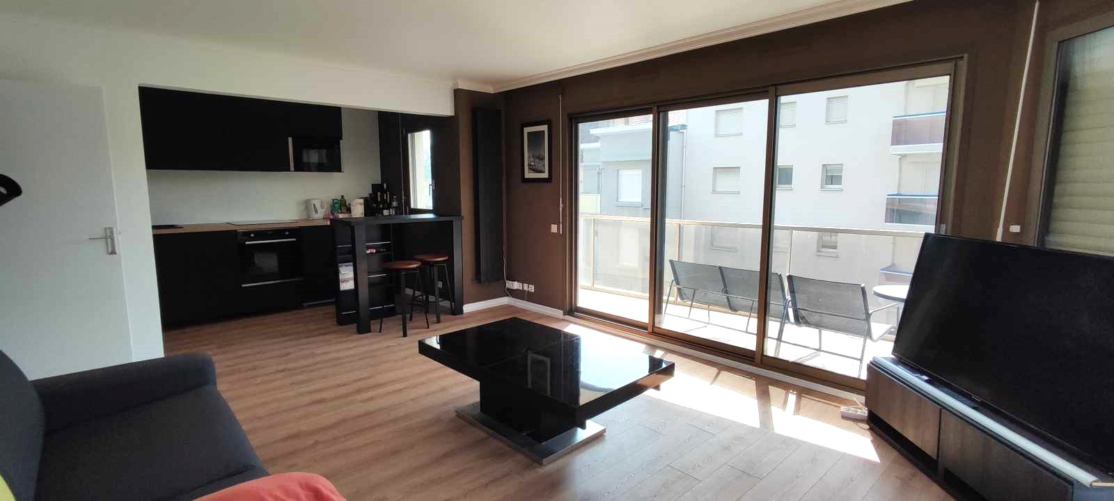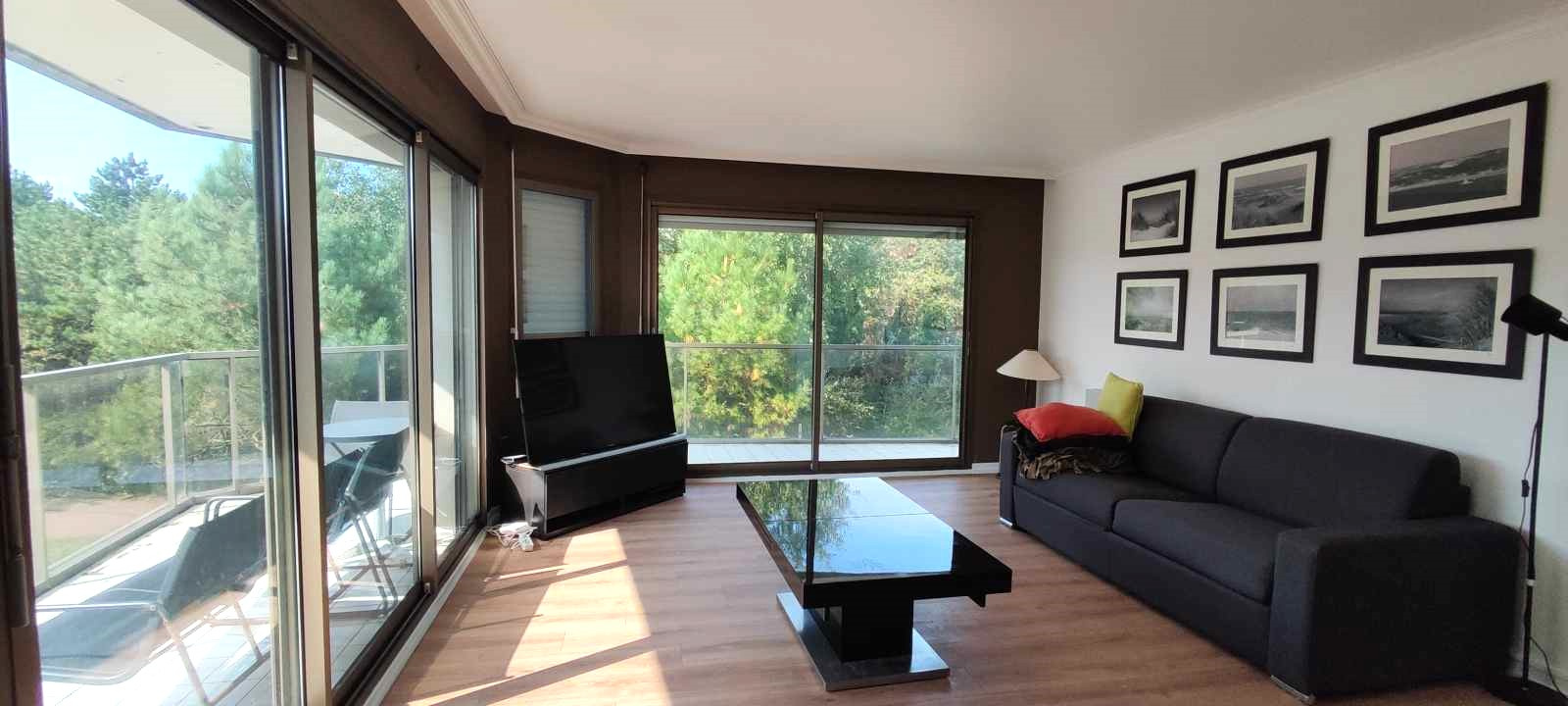 - un salon/séjour d'angle de 28m² baigné de lumière donnant sur une terrasse de 30m² orientée SUD/OUEST avec une agréable vue sur la pinède