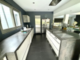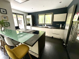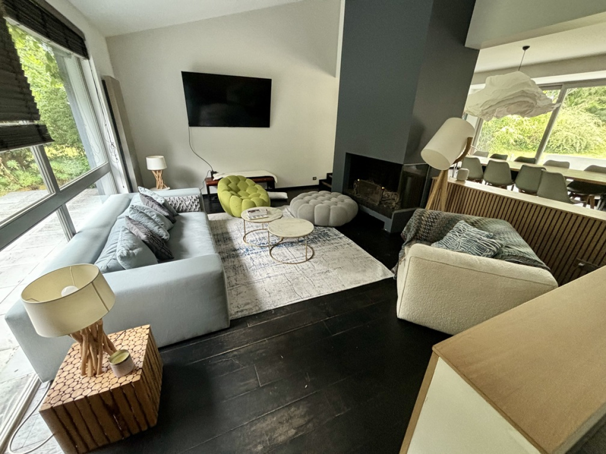 Superbe villa contemporaine de 250m² habitable de plain pied avec jardin et garage, comprenant une entrée avec placard, un vaste séjour/salle à manger de 80m² avec cheminée feu de bois et terrasse exposée Sud Ouest, une cuisine ouverte aménagée et équipée disposant d'un ilot central, une chambre parentale avec salle de bains contenant douche et baignoire et wc, une salle de douche avec Wc, une chambre, un wc séparé avec lave mains, une salle de jeux. Au rez-de- jardin, une chambre, une salle de douche, wc séparé, deux chambres communicantes avec salle de douche, une salle de jeux, une buanderie. Un garage pour 2 voitures et allée de stationnement pouvant accueillir 5 voitures, dépendance extérieure.